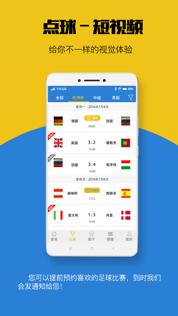 『数据』功能得到完善,比赛数据、积分、射手榜实时同步;