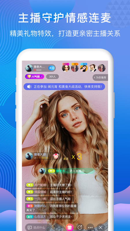 直播连麦,打赏关注,还可以和喜欢的主播比心聊天啦;
