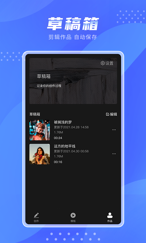 视频太长剪不完?没有关系!草稿箱帮你记录,保存草稿后下次打开极剪继续编辑未完成视频。