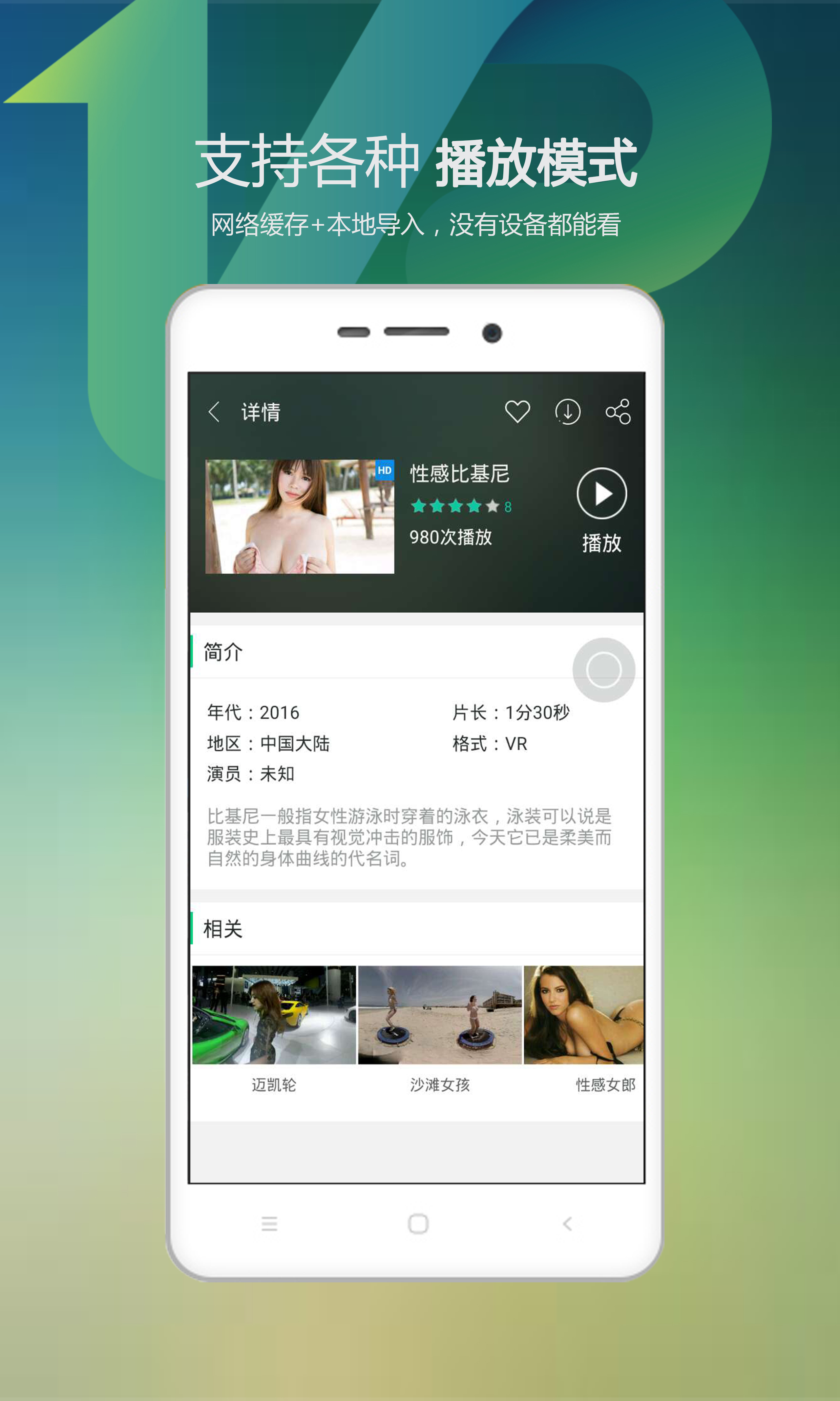 一款聚合了海量vr资源、vr电影、vr女神,vr旅游、直播等在线高清内容的应用,支持全沉浸VR体验、缓存,播放手机本地VR视频,友好便捷的交互设计给您优质的VR体验。