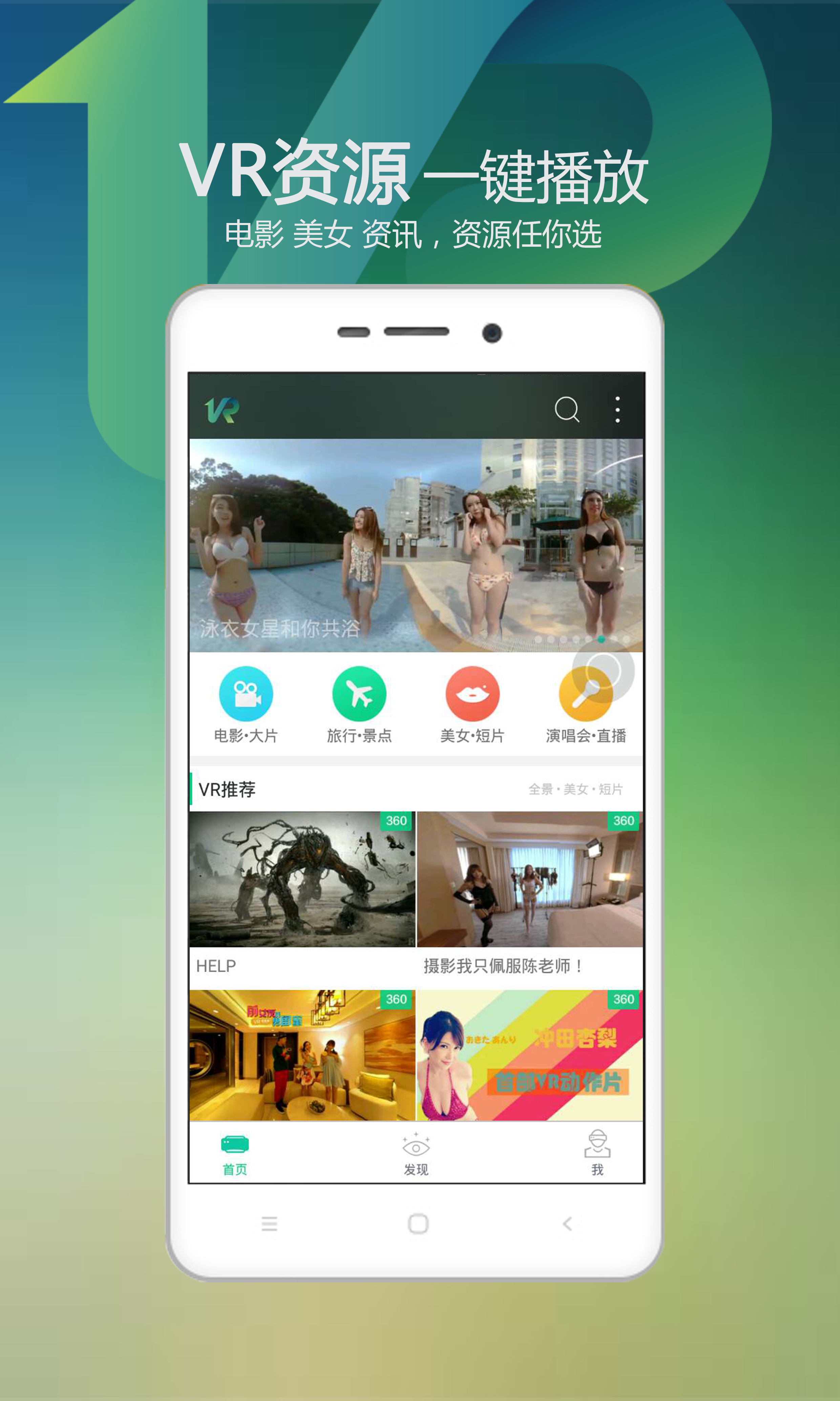 2、VR旅游、VR演唱会、VR女神、VR电影大片应有尽有;