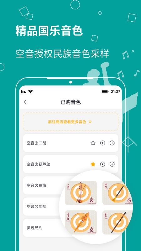 内置多套精细调校的高质量音源,精品空音民乐音色,随时激发音乐灵感。