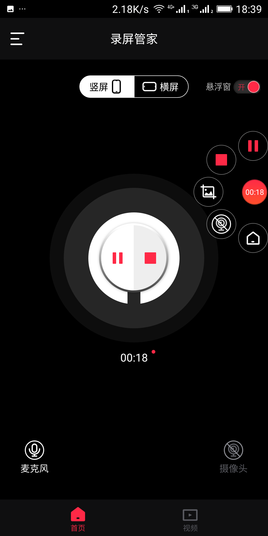 5、点击主页、通知栏或悬浮窗上的暂停/停止按钮即可暂停或停止录制;