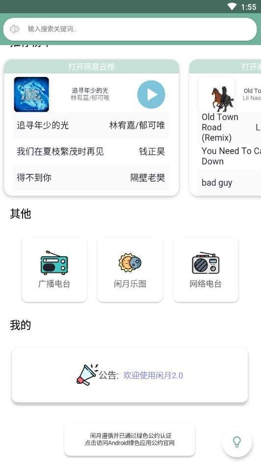 闲月音乐在同类软件里,体积已经非常小巧了,才1.3MB