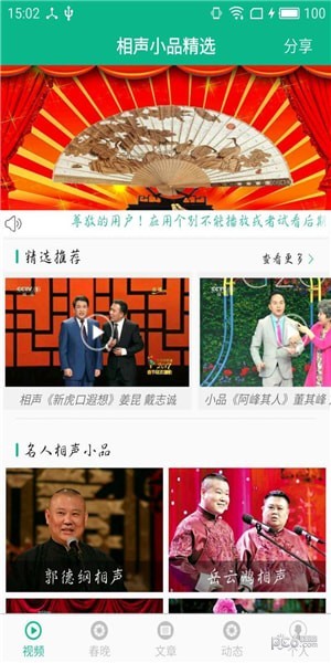 相声小品精选app是一款汇集相声和小品,历届经典相声小品、文章阅读的应用,分类相声包括郭德纲、岳云鹏、曹云金等精彩相声视频,小品包括沈腾、宋小宝、贾玲等搞笑明星精彩视频,欢迎观看体验。。。