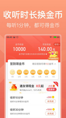 「听节目赚」每听1分钟都可兑金币,金币可兑现金