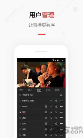 3.发布端新增了部分用户管理功能,包括个人禁言、全员禁止聊天、全员禁止提问、踢出功能,方便讲师更好地管理直播