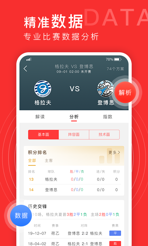 【数据】专业赛事数据支撑,联赛/杯赛积分榜和赛程。指数走势,海量前瞻分析,为你助力赛前预测。