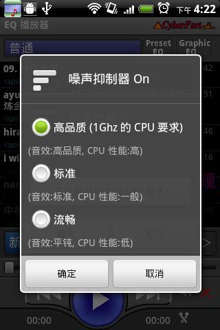 支持EQ调节,CyberFrot Japan 出品,预置了22个风格的。自由调节变换你喜欢的音调,内含10个均衡器。还包括耳机控制调节,播放列表,蓝牙控制等等,推荐下载使用。