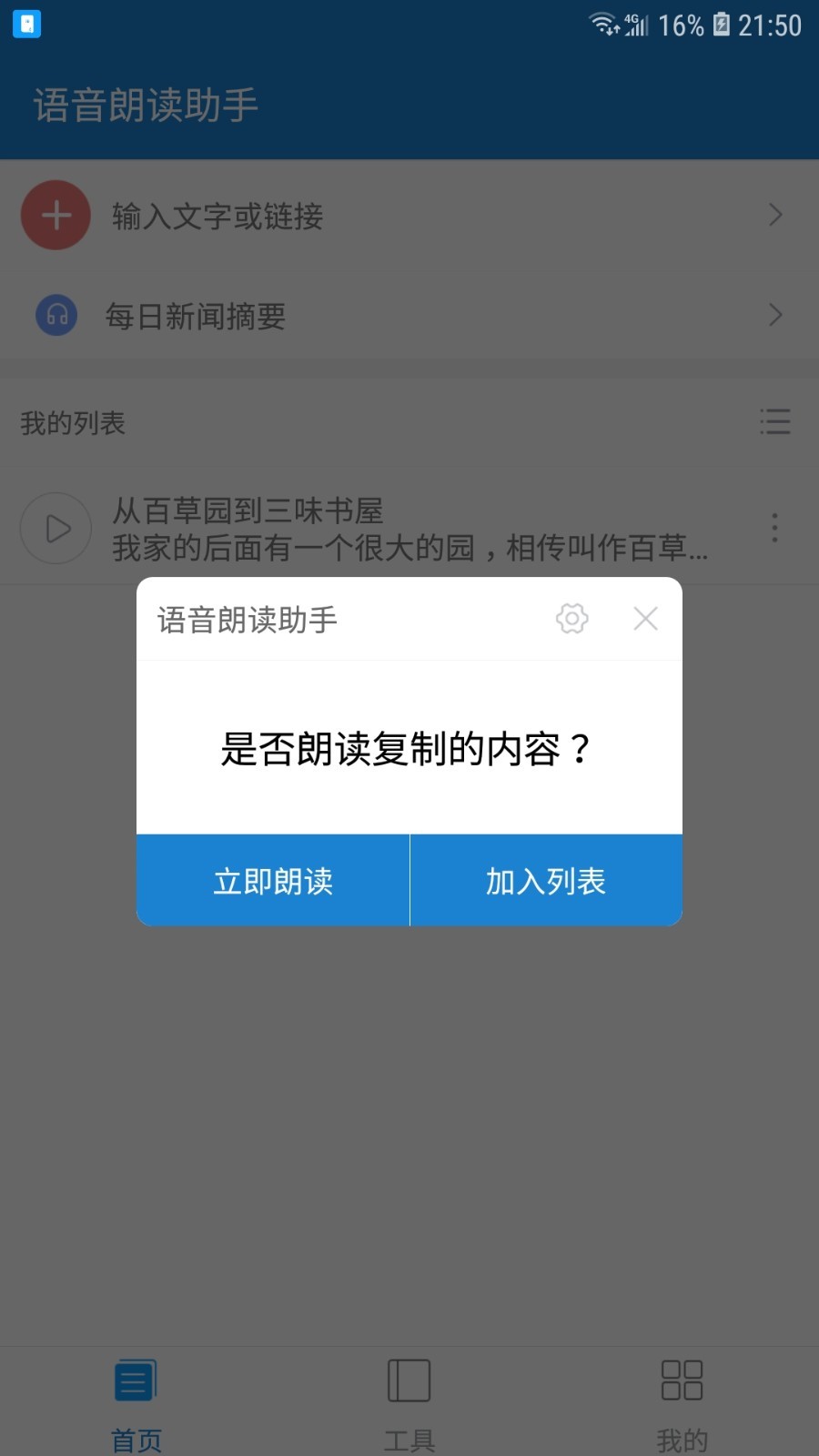 3.支持朗读列队,睡觉之前选几篇自己想听的文章加入队列,朗读助手会依次朗读,朗读完成后自动停止朗读,伴你轻松入梦。
