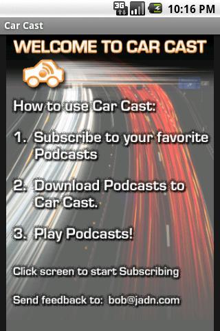 汽车铸造是一个简单的音频播客下载和播放应用程序。它有大按键,大文本,还能够记得上次播放的位置。