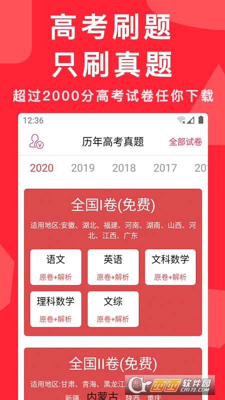 高考真题app下载安装是合肥巨门信息科技有限公司专门为高考考生们精心打造的一款学习app,在高考真题app上用户可以看到历届高考的所有试卷,各种版本的都有,高考是一个人一生中的一个转折点,非常的重要,感兴趣的同学赶紧下载使用吧!