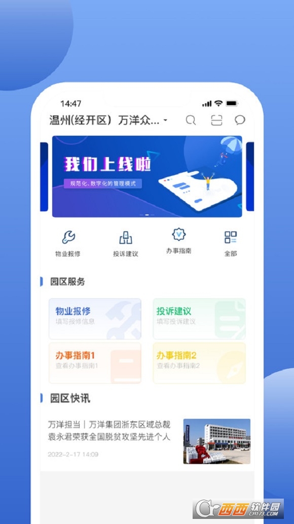 1、园区服务,提供线上多个园区服务查看入口,突出服务的主动性;
