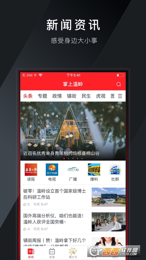 掌上温岭app是专门为温岭本地的朋友打造的新闻资讯服务平台,用户通过手机app就可以了解最新的本土资讯和时事要闻,并可以订阅自己感兴趣的栏目,观看精彩的小视频,需要的朋友可以来西西下载掌上温岭app进行使用