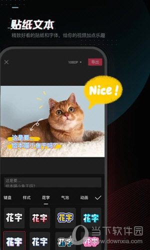 4、为视频添加独特的材料、文字和贴纸,提供多种风格和效果。