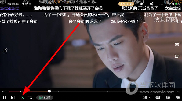 1、进入到某一个视频的全屏播放界面,在该界面点击左下角如下图所示的按钮。