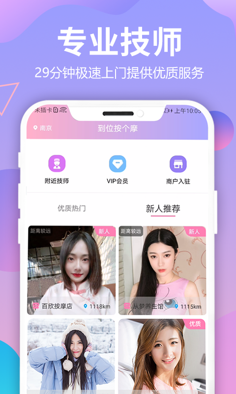 2、连接本地优质商户,连接本地附近技师,为用户提供高品质的按摩服务体验;