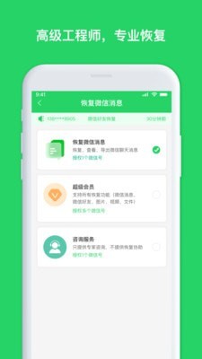 目前产品全面支持:恢复微信聊天记录、微信wxid加好友、微信视频、微信账单 微信语音、微信图片、手机图片等各类数据。数据恢复有一定概率,无法保证100%恢复。但是通过我们专业的软件技术能有效提升数据恢复的概率。