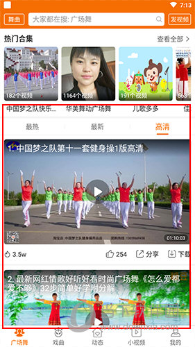 1、火热广场舞视频大全,云裳广场舞、糖豆广场舞、2017热门广场舞合集、小苹果广场舞、佳木斯广场舞、DJ广场舞、99广场舞等热门广场舞视频大全,让您留住年轻和魅力,舞动青春,展现活力。