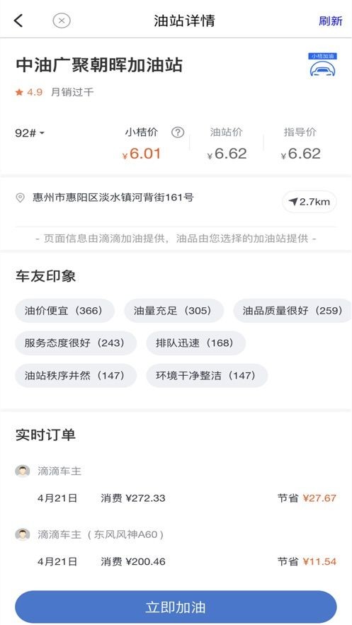 3、大家可以通过软件直接付款,到了地方直接加油不用下车。
