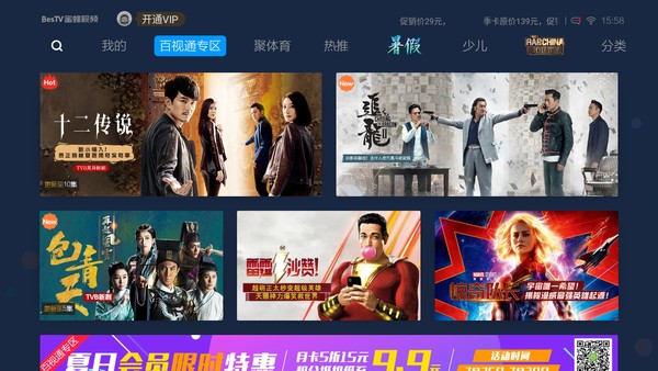 BesTV蜜蜂视频软件内容集成爱奇艺、百视通、爱视、4K花园、Try健身、斗鱼、pptV聚体育等优质资源,并取得百视通牌照授权。