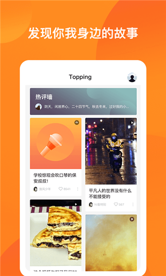 Topping下载安装,在Topping短视频与更多有趣可爱的小伙伴分享互动,来Topping发出你的声音,尽情展示自我,更有海量神评论。