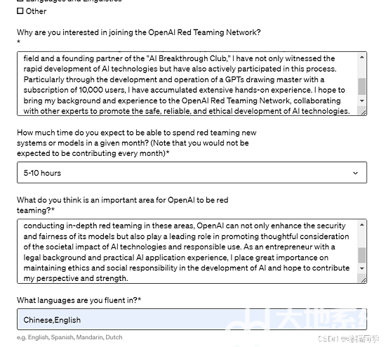 (1)申请地址:https://openai.com/form/red-teaming-network