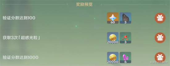 验证分数达到100、获取3次「超感光粒」、验证分数达到1000