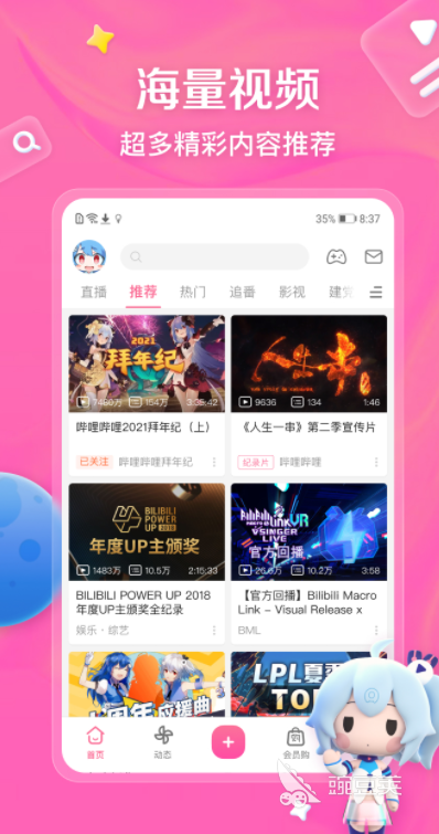 B站是一款主打二次元的应用,在这里面视频的分类也是很多的。不过虽然说是主打二次元,但也是有较多学习以及科普视频的,可以满足不同用户的需求。