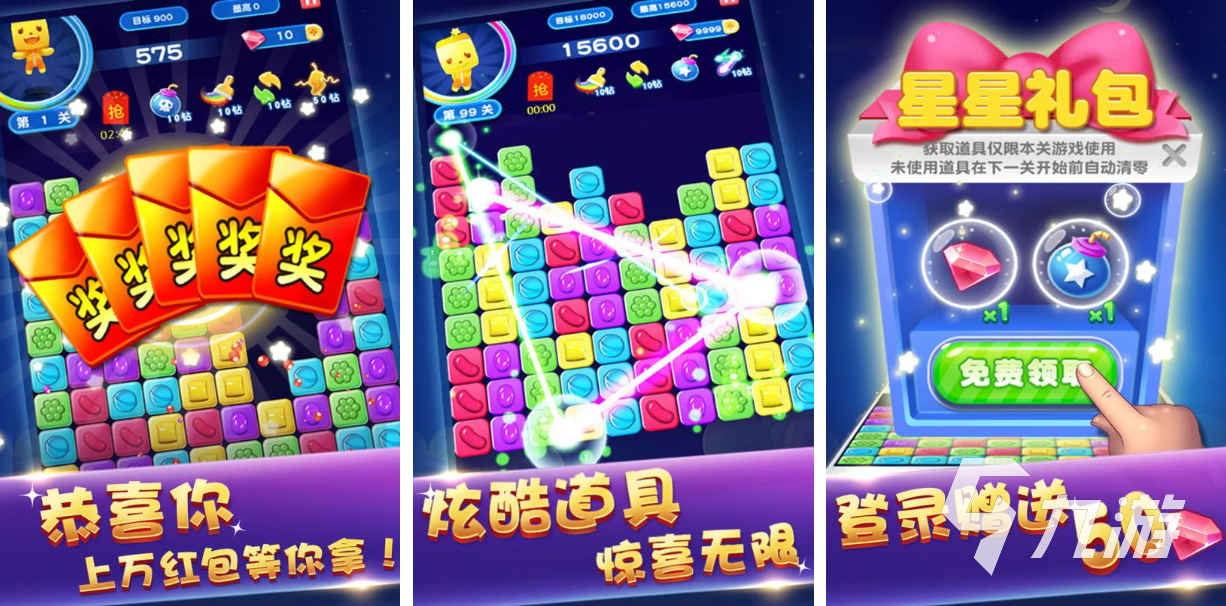 这是款画面风格优秀的单机消除题材游戏,轻松愉快的BGM和绚丽的消除特效让玩家感觉沉浸感十足,登录游戏就送很多钻石和各种道具,无比良心的奖励机制更让玩家竖起了大拇指,丰富多变的各种关卡让游戏耐玩性提高不少。这款消灭星星系列的游戏玩起来超级解压,消灭满屏星星的感觉会让你心旷神怡,压力大的玩家赶紧试试本款消除游戏神作吧。