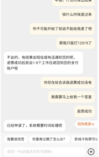 买的万达的电影票,想退票,发现不支持退票,买那么多票还没想过,竟然不允许退票,太生气了!霸王条款,查询了一下,这样违反广电的规定。