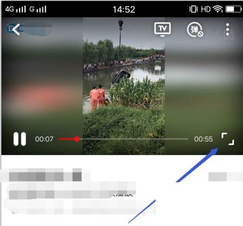 01、 打开优酷后,随便打开一个视频,进入到播放模式,这个时候是小窗口播放的,点击视频界面全屏按钮图标,如下图。