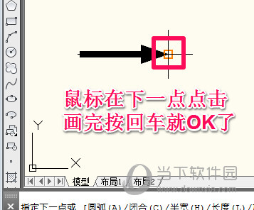 这时鼠标在下一点单击就画好箭头了,再按一下回车就退出了多段线工具,方法很简单,大家多练习就好了。