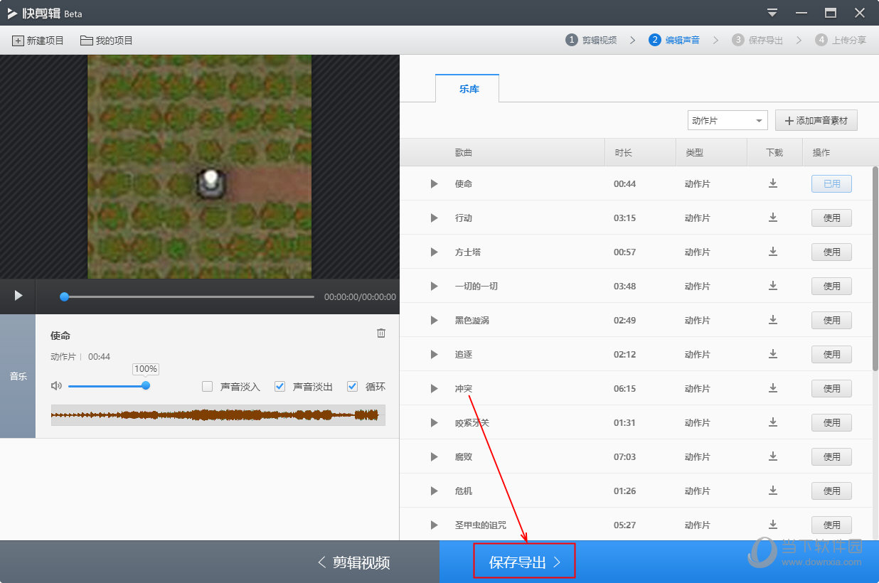 2、在“编辑声音”界面,点击右下角的“保存导出”;