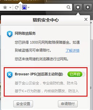 基于金山云安全,专业级防钓鱼、防木马,基于K+行为防御,内核级防篡改、防注入。得益于Chrome内核的安全和金山本身的互联网安全技术,相信猎豹浏览器在安全方面会做得更好。这也是猎豹浏览器敢提出网购敢赔服务的依据之一。