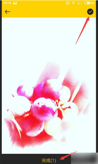 任意选择一张已完成的图(请忽略我简陋的图,捂脸...)点击打钩后下面会有【完成(1)】字样,点击【完成(1)】。