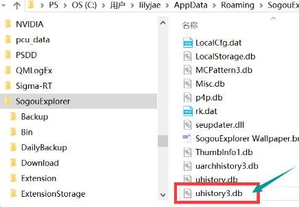 进入界面,左侧栏点击sogouexplorer/Dailybackup文件夹,在里面找到uhistroy3.db.日期,日期选择前一天的。鼠标点击这个文件,键盘按住CTRL+c。