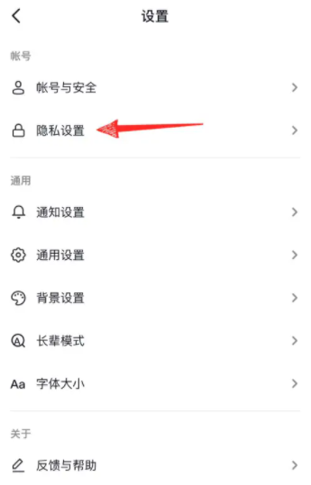 1、进入手机抖音设置页面里,然后点击隐私设置。