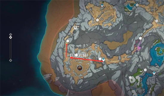 方法一:在崎岖石区一直往地下水泽走就好了,地图上可以看到唯一的一条路
