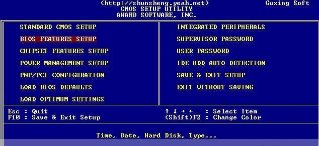首先我们需要进入到bios界面,然后选择bios features setup。不一样的主板bios也可能也不一样,不过大多数都差不多。
