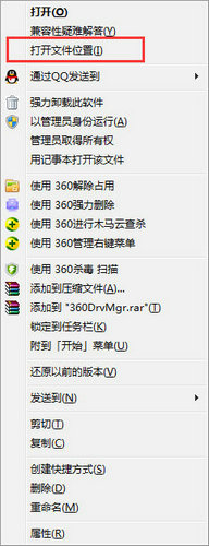 1、首先鼠标右键点击360驱动大师的图标,选择“打开文件位置”;