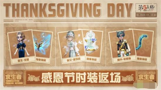 第五人格2022感恩节活动将会于11月18日正式开启,这一次的活动力度非常的大,不仅包含了返场的皮肤,还会有更多的免费奖励供玩家收集,很多玩家想要知道第五人格2022感恩节活动有哪些,其中包含了个性动作解锁卡、头像、专属头像框、排位保护卡、五折优惠券等等,小编为玩家带来了第五人格2022感恩节活动介绍。