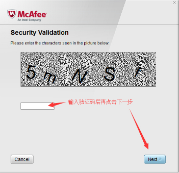 输入一下验证码,点击next就可以了,现在大家知道怎么卸载mcafee了吗?其实很简单的,赶紧来试试看吧。