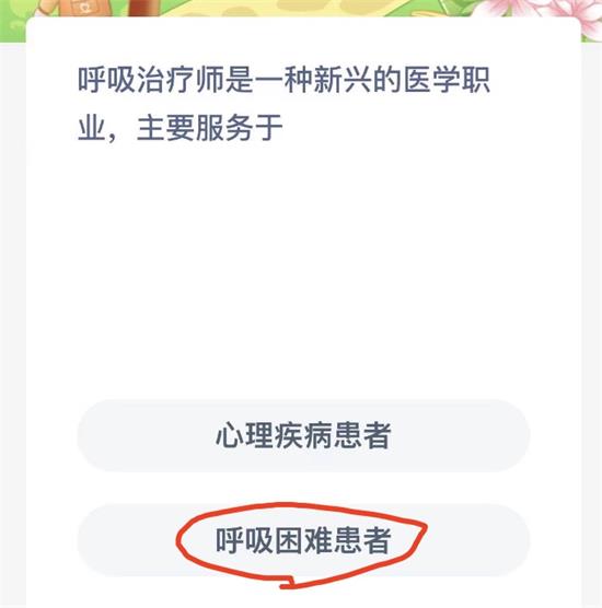 蚂蚁新村11月23日今日问题呼吸治疗师是一种新兴的医学职业主要服务于?蚂蚁新村通过每天回答问题,不仅可以丰富自己的职业相关知识,还可以获得免费的村民,加速产出的木兰币,提供了详细的解析,能够让小伙伴知其然知其所以然,小编为小伙伴带来了蚂蚁新村小课堂今日答案最新11月23日,正确答案选择呼吸困难患者。