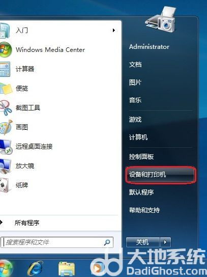 1,首先点击屏幕左下角Windows开始按钮,选择设备和打印机进入设置页面。