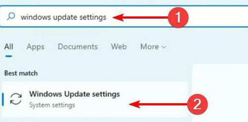 1、我们还可以手动更新驱动,使用搜索功能搜索并打开“windows update settings”。