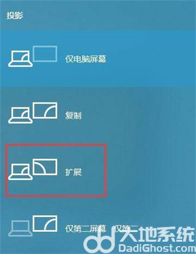 3.使用鼠标左键单击“扩展”功能以完成Win10扩展屏幕的设置。