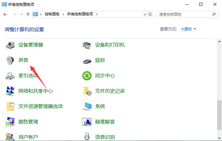 3、在确保设备完好情况下需要对电脑进行设置,首先打开“控制面板”,点击“声音”。