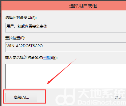 6、点击进入选择用户或组界面,点击高级,如下图所示。