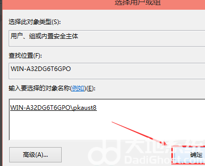 8、在选择用户或组界面里点击确定,如下图所示。